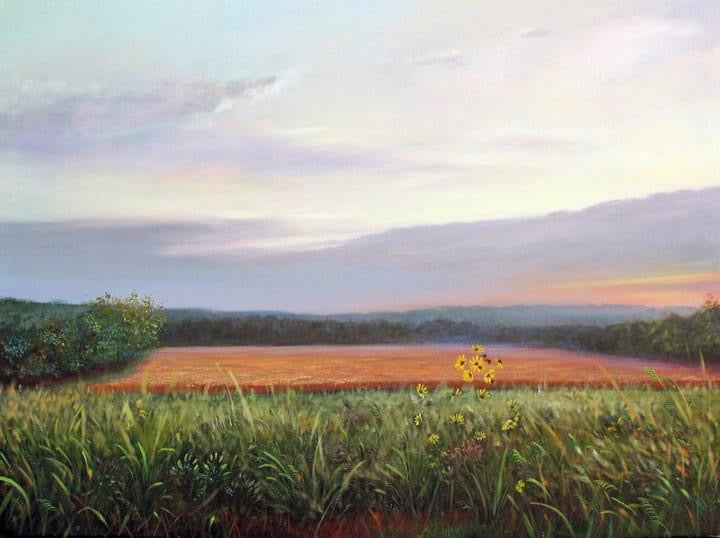 Description: Kansas prairies landscape painting on canvas, summer wheat field painting by Lawrence Kansas artist, Mehrzad Alison - M. Alison