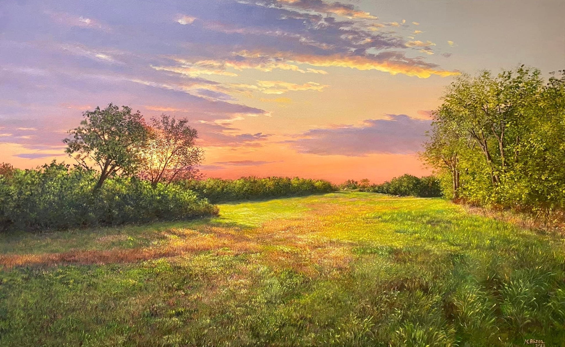 Description: Kansas Prairies sunset landscape by Lawrence, Kansas artist Mehrzad Alison