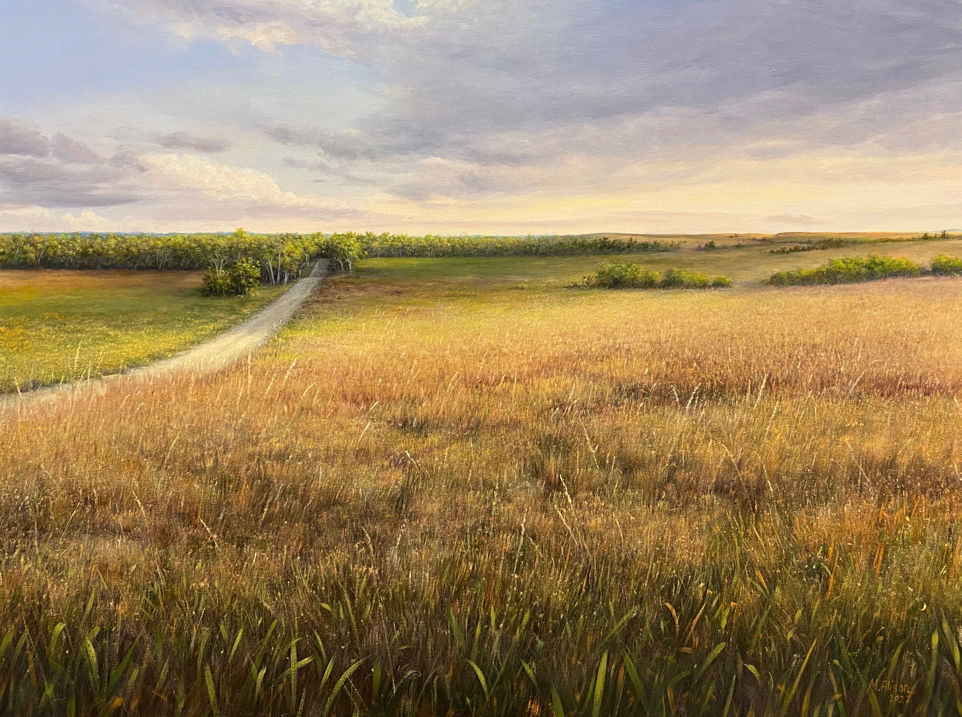 Description: Kansas Flint Hills landscape painting, Kansas prairie grass, by Lawrence, Kansas artist Mehrzad Alison, ( M. Alison ).